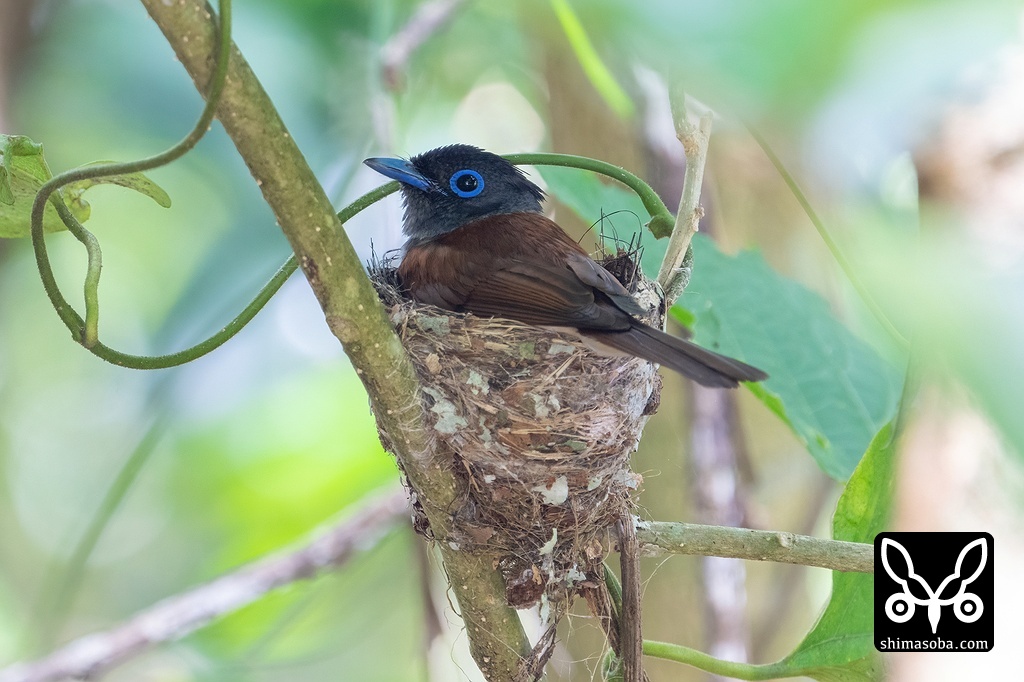 抱卵中のサンコウチョウのメス。