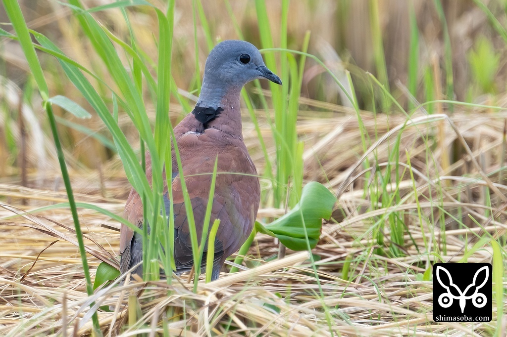 ベニバトのオス成鳥。こちらも田んぼで落穂拾い。
