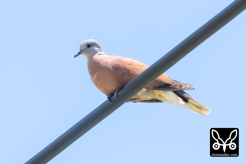 電線で見つけたベニバトのオス。