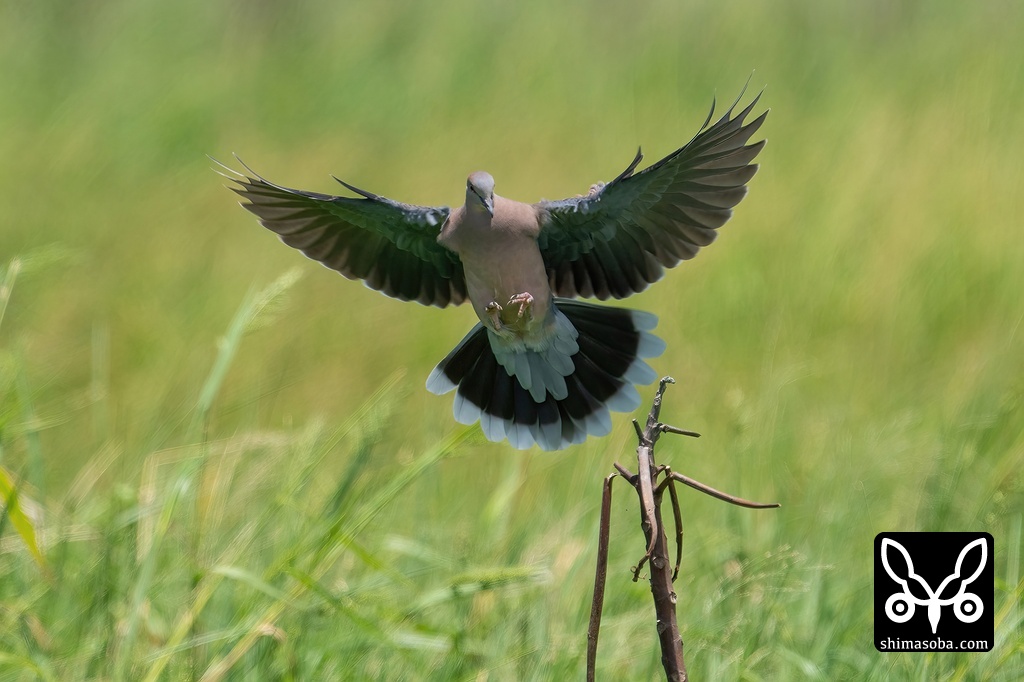 田んぼでは繁殖を終えたスズメやシマキンパラが群れになりつつあり、数を増やしています。キジバトはまだ繁殖中で2〜3羽ほどで行動していることが多いです。