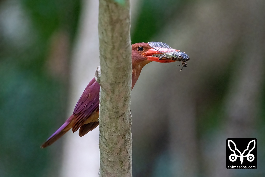 数日中に巣立ちそうなリュウキュウアカショウビンを見てきました。時間帯的に給餌回数は少なかったですが、親鳥はクマゼミをヒナに与えていました。
