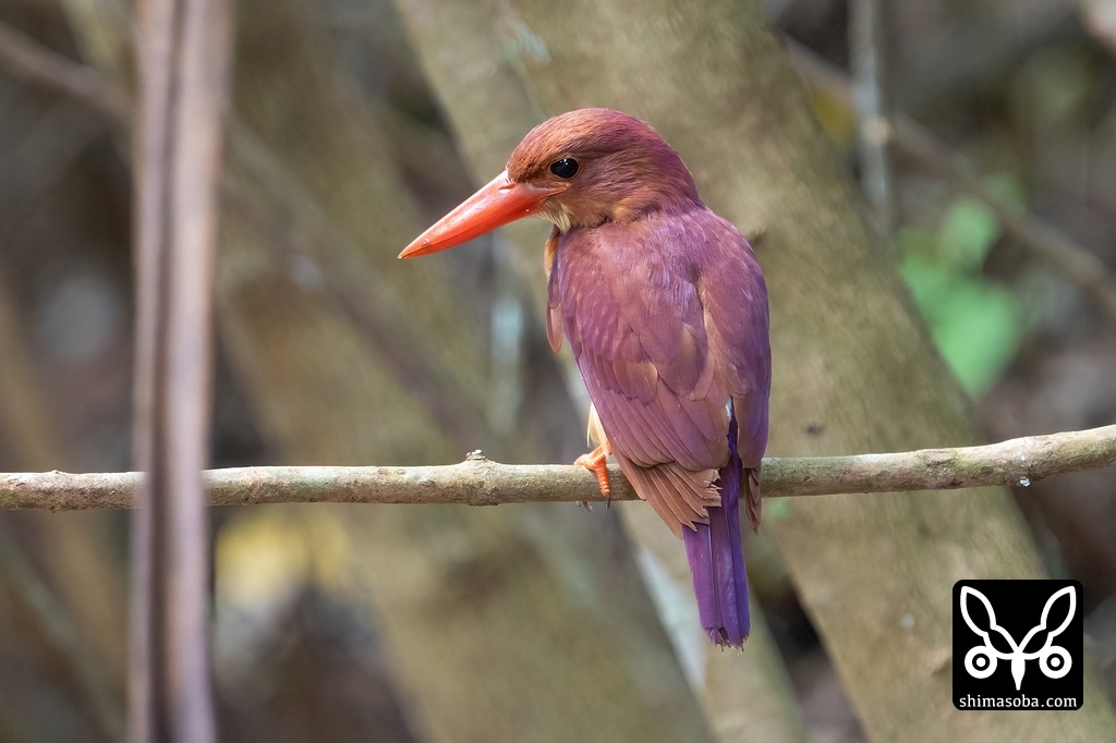 同じ場所には アカショウビンの幼鳥が4羽 おり、この個体の育てあげた兄弟だと見られます。