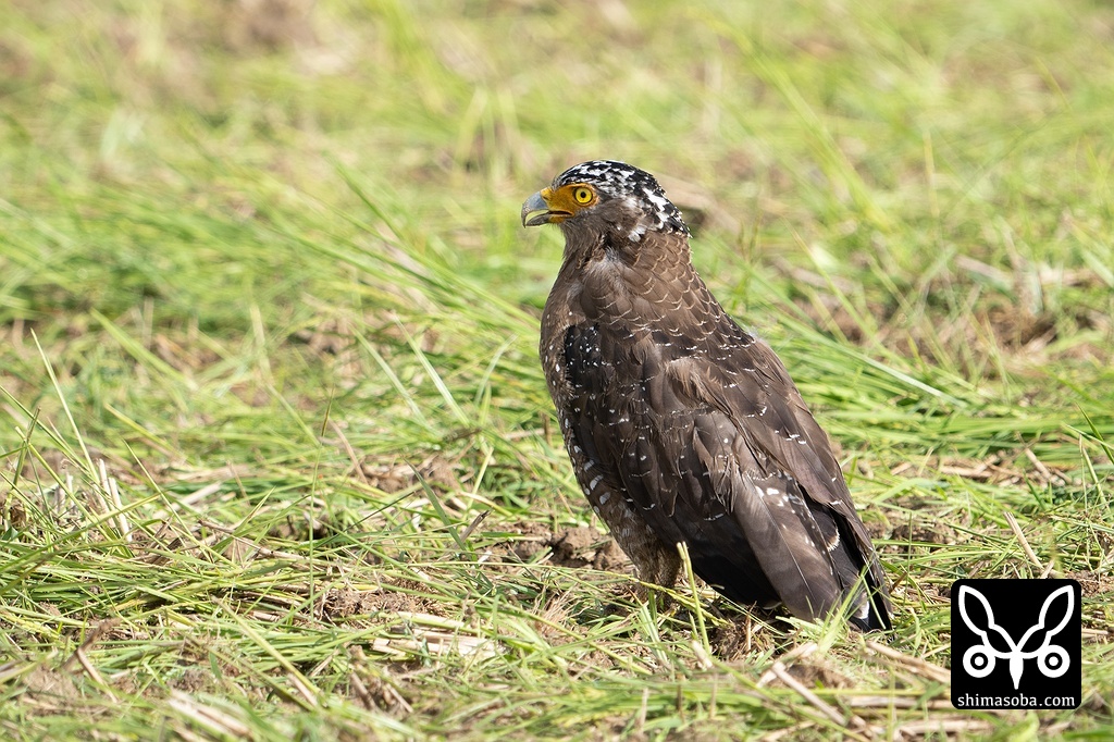 繁殖期に入ると出会う機会がすっかり減ってしまうカンムリワシですが、8月も中旬ごろになると田んぼなど人目につき場所に現れるようになります。