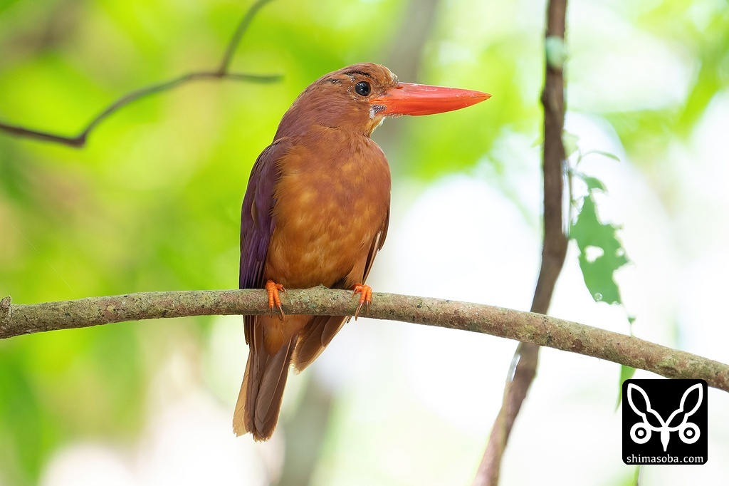 アカショウビン成鳥。換羽が進みみすぼらしくなってきています。