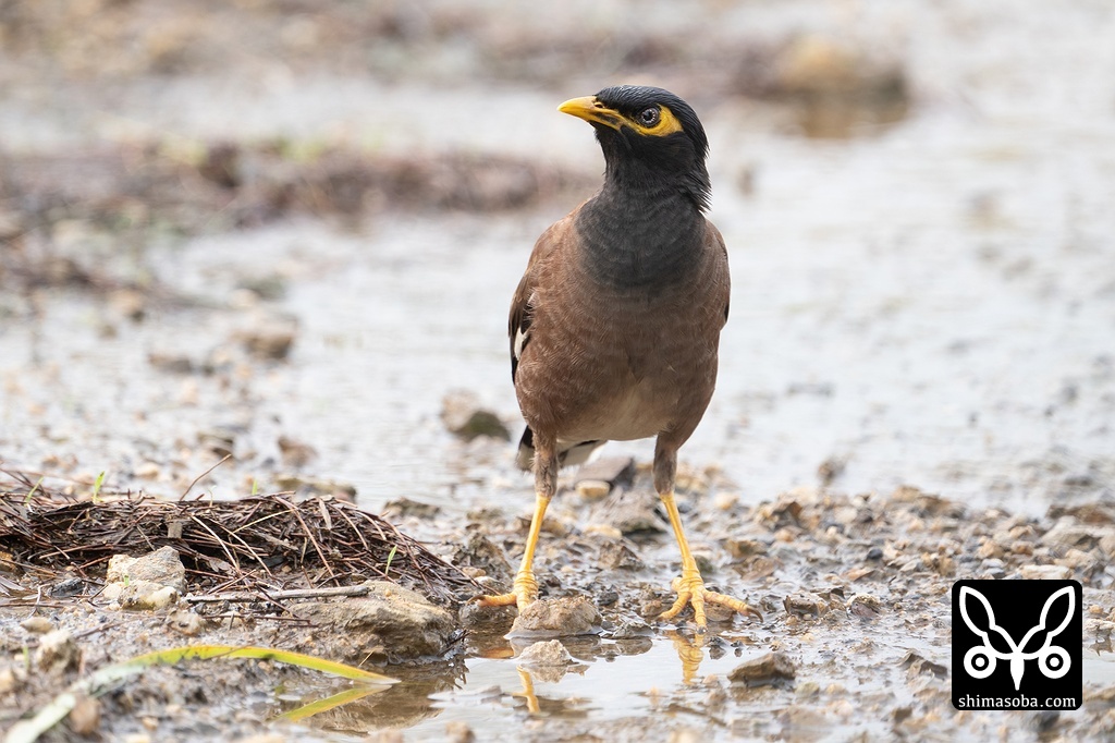 道路の水たまりで水を飲むインドハッカ。