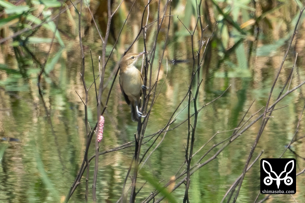 オオヨシキリは草の合間を移動しながらバッタなどを捕まえていました。