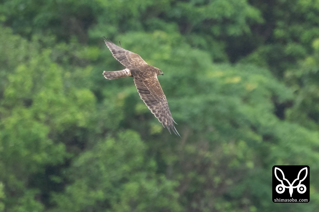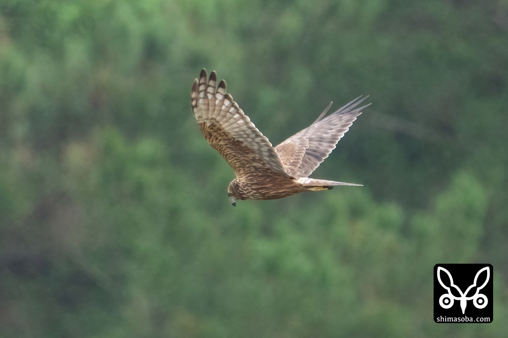 田んぼの上を飛び回るチュウヒ。