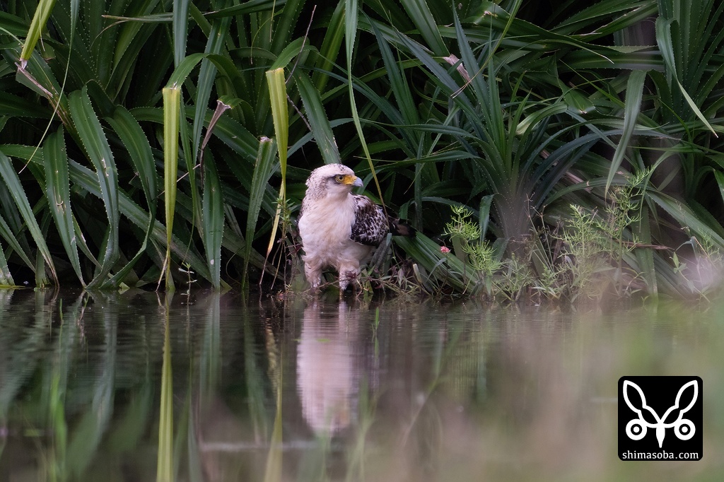 田んぼに飛び込んだカンムリワシの幼鳥。狩りは失敗?