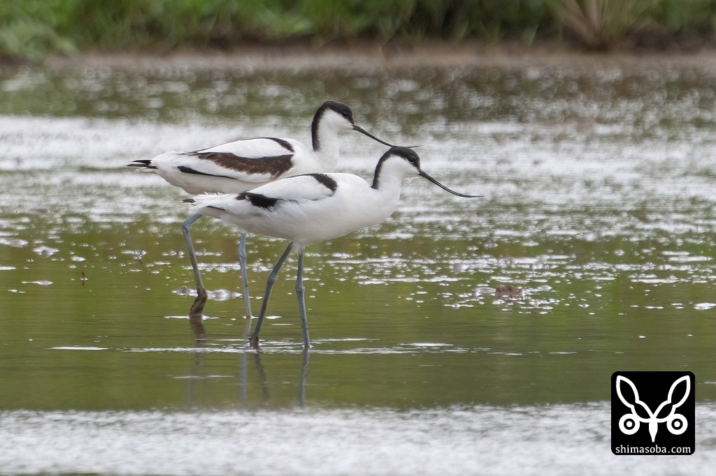 ソリハシセイタカシギが2羽飛来。島内をうろついている個体かもしれません。ほかでは4羽のソリハシセイタカシギも確認されています。