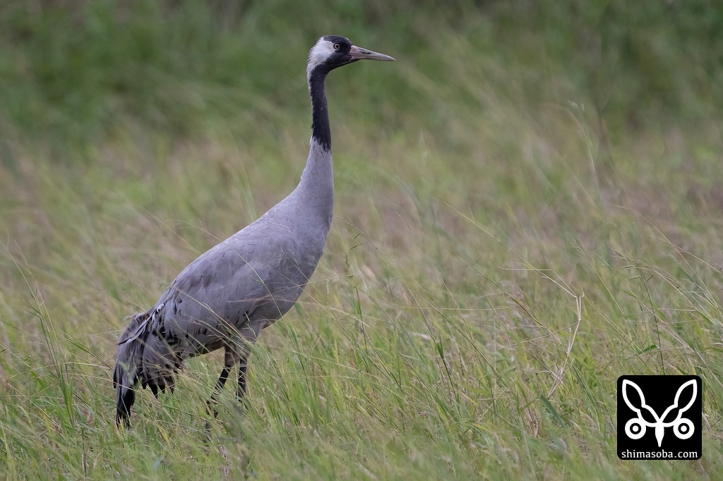 お気に入りの田んぼで落ち着いているクロヅル。