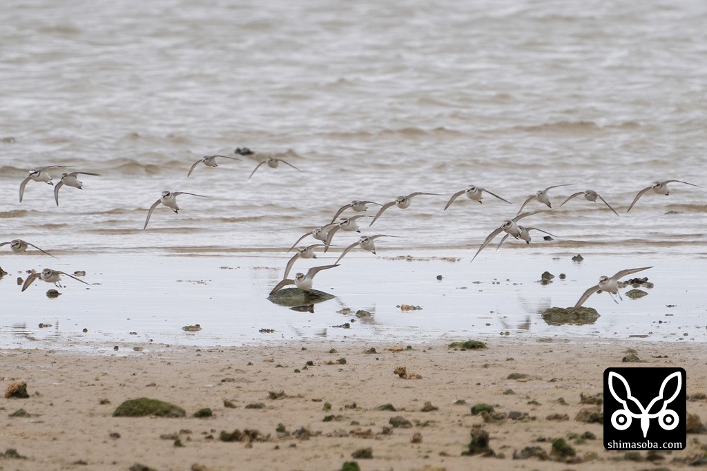 シロチドリやミユビシギ、メダイチドリの越冬組。