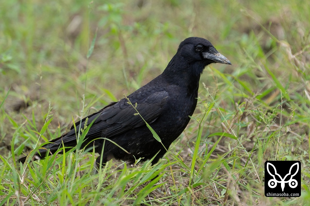 以前は、冬になるとある程度の群れで飛来していたミヤマガラスがここ数年は確認できずにいましたが、今季は3羽がやってきました。時折、オサハシブトガラスの群れと合流していました。