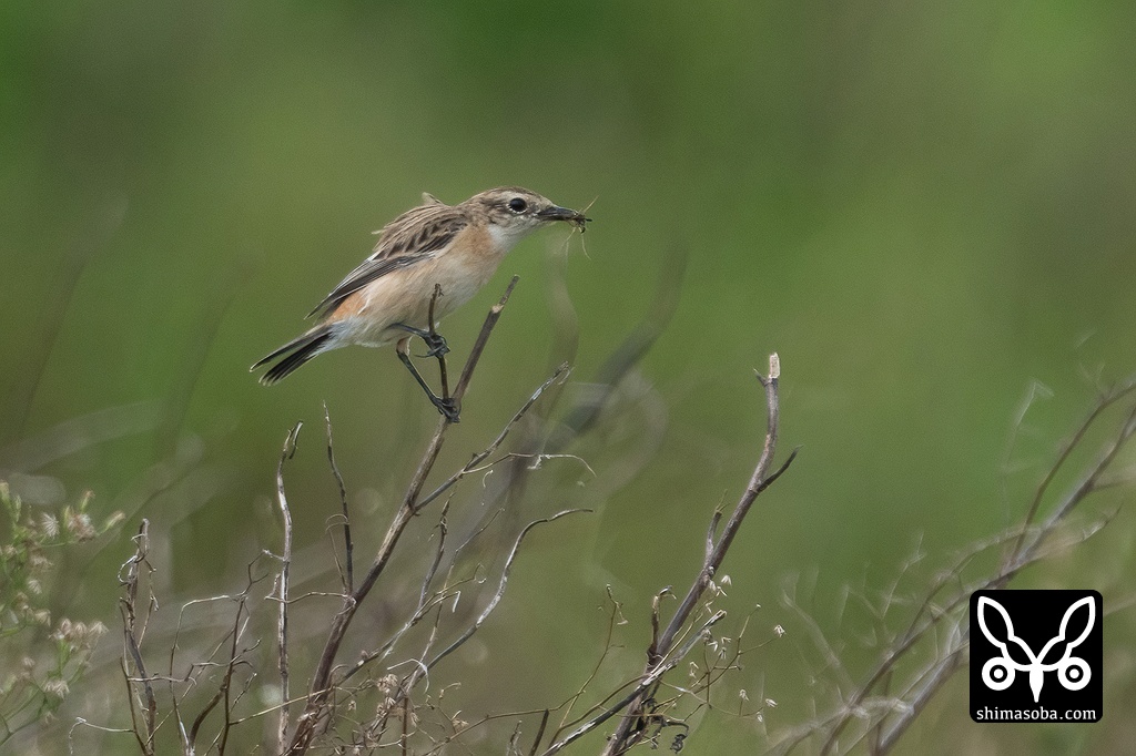 クモを捕まえたノビタキ。