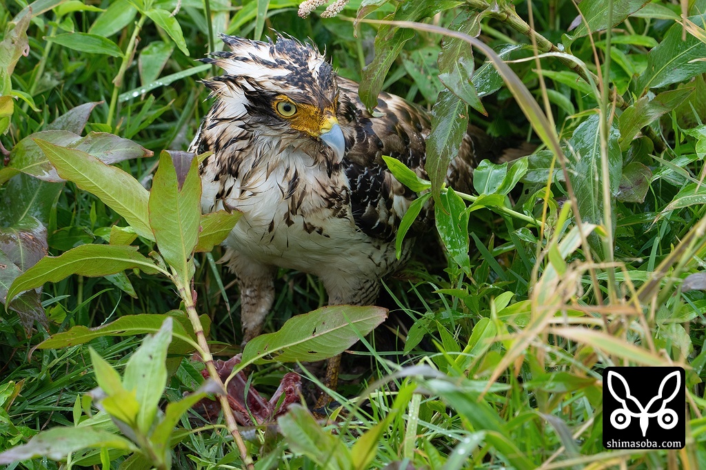 獲物を食うカンムリワシの幼鳥。何を食っているのかは分からず…。