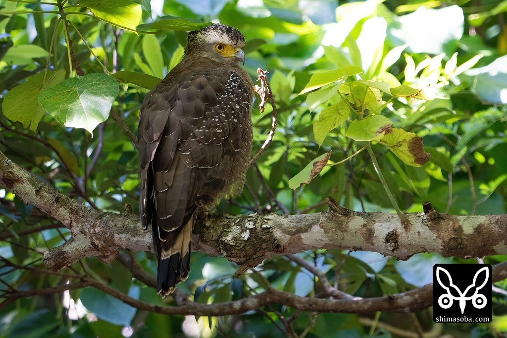 自宅のリビングからよく目撃していたカンムリワシ。いつもチョウゲンボウにちょっかいかけられています。