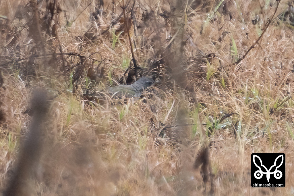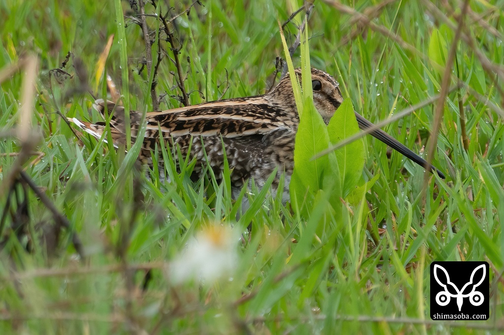 草陰に隠れるタシギ。渡り個体と思われます。