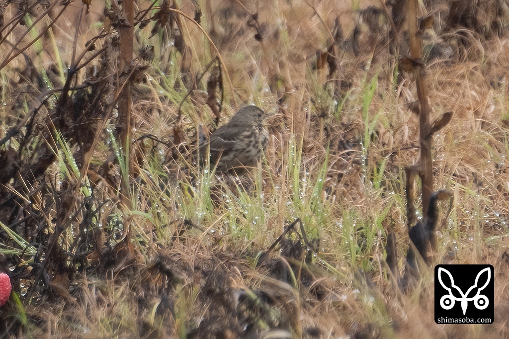 田んぼのあぜにシベリアツメナガセキレイがいました。距離があり、草丈で姿が見え隠れして観察は困難。写真を数枚撮るのがやっとでした。近くにはタヒバリもいました。