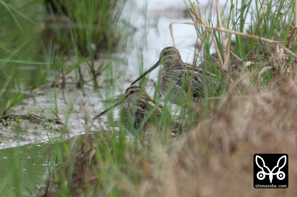 タシギ2羽。警戒心強め。