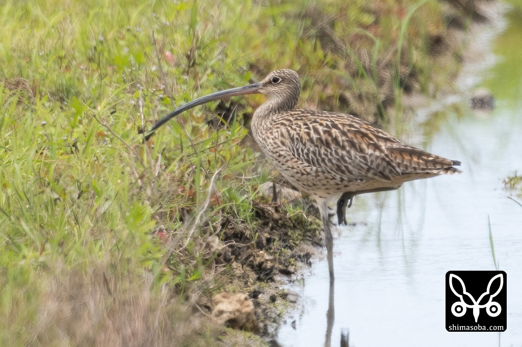 田んぼにホウロクシギ。