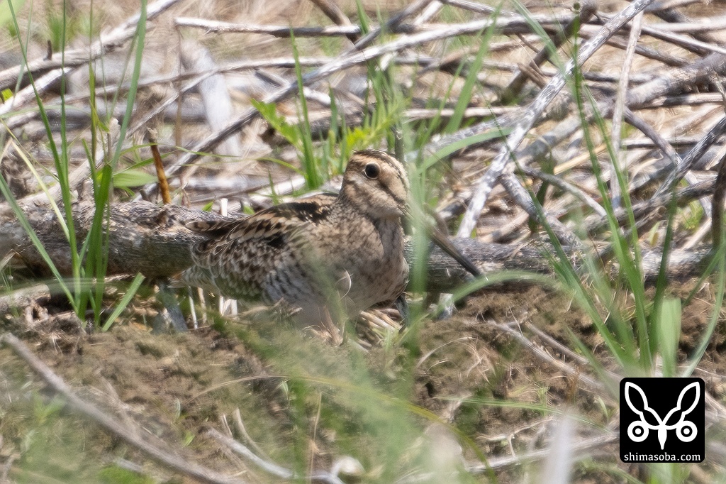 遠くの草むらにチュウジシギ。