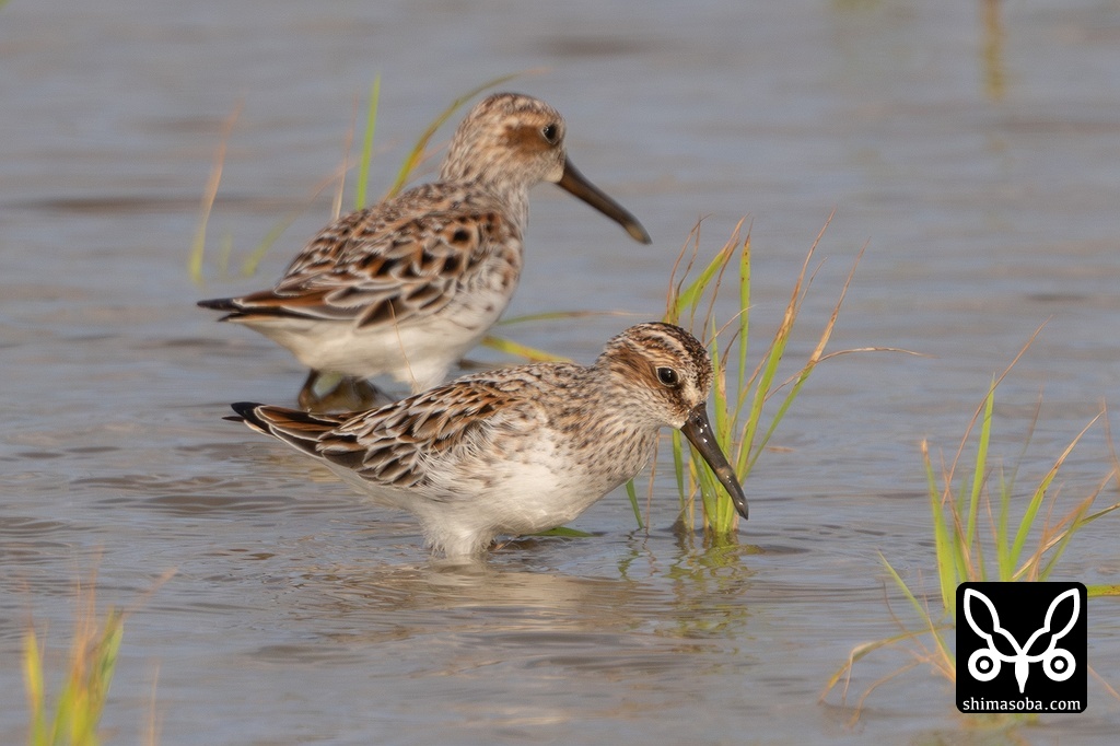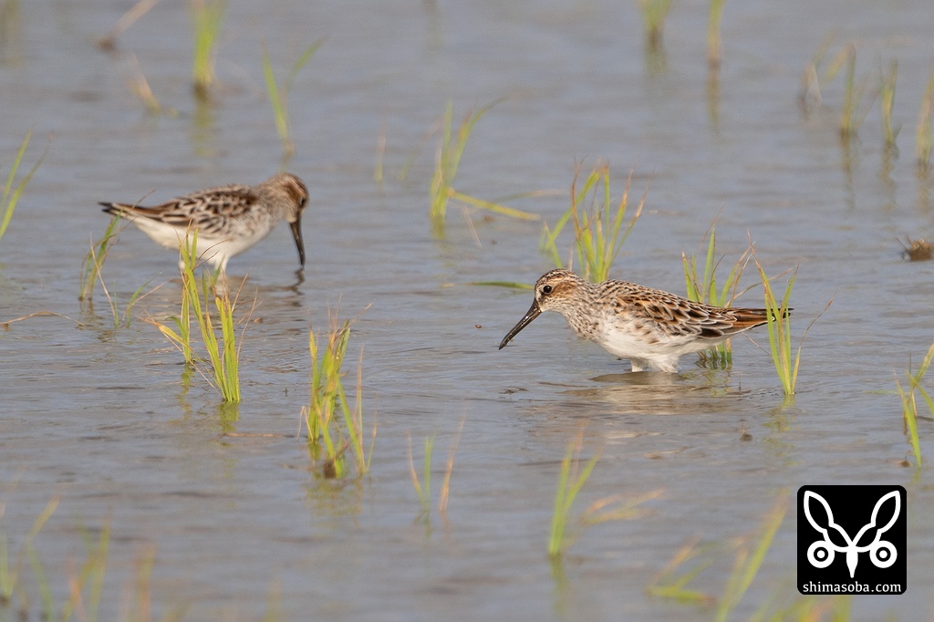 サルハマシギは夏羽から冬羽までさまざまなステージの換羽状況の4羽が滞在。今季、3個体目となるヨーロッパトウネンやキリアイ3羽、今季初オジロトウネンのほか、トウネン、ヒバリシギ、ウズラシギ、セイタカシギ、コアオアシシギ、アオアシシギ、イソシギ、ムナグロなどが一つのエリアに飛来しています。