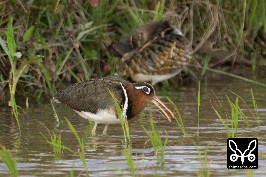 タマシギのメス(手前)とオス。カップル成立しているようでした。