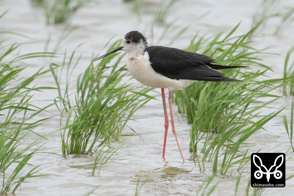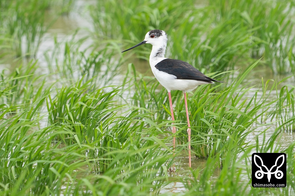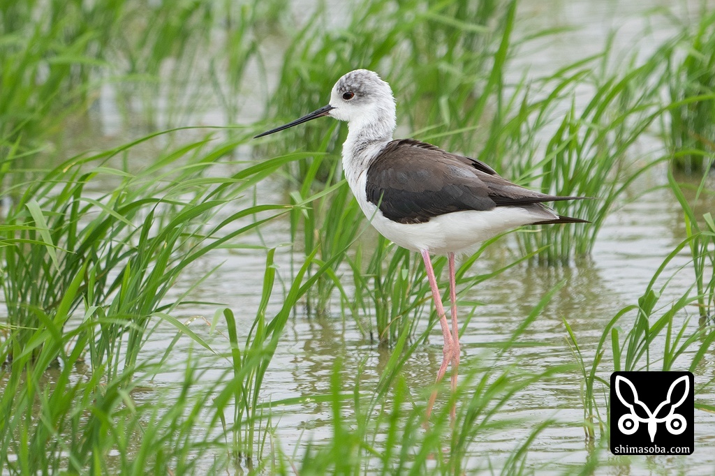 セイタカシギのオス成鳥夏羽。この個体は左足の付け根あたりに骨折痕がありますね。