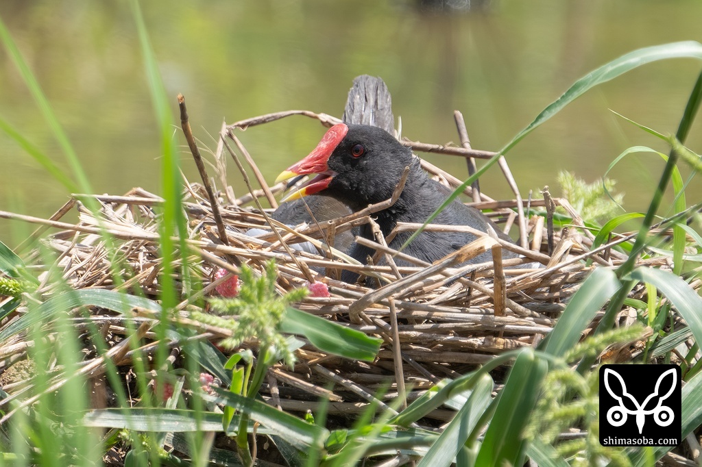 抱卵するバン。散歩など人通りの多い農道脇に巣を作っていました。