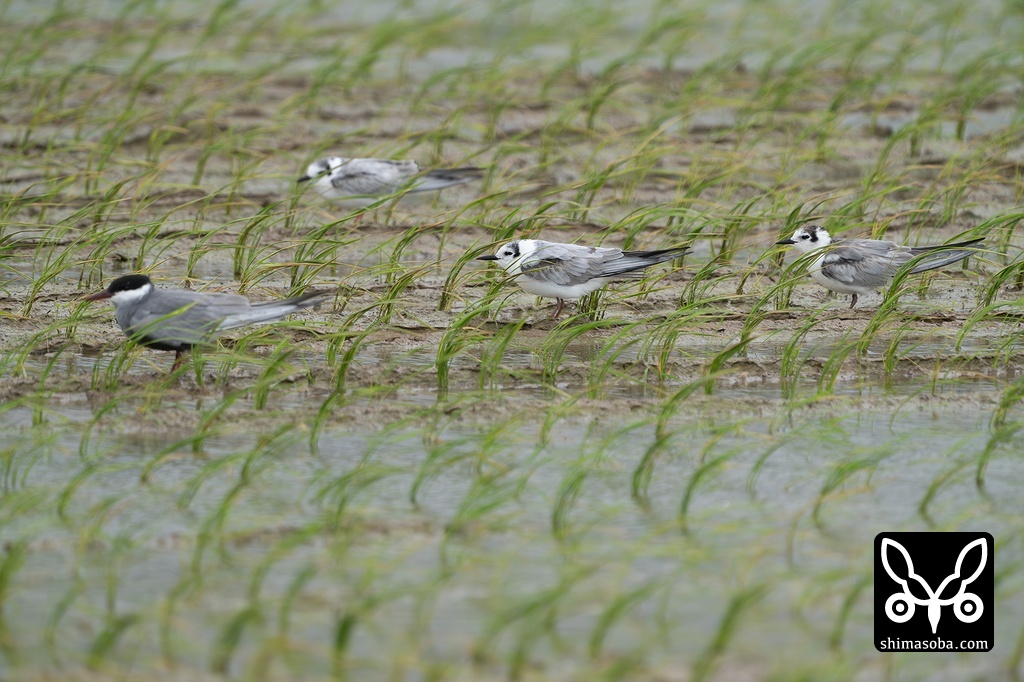 ハシブトアジサシは何日か前から滞在中。まったく警戒心のない個体で、子どもたちが水遊びでさわいでいてもお構いなしで餌取りしていました。