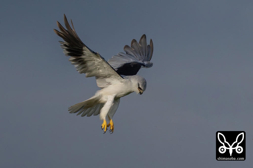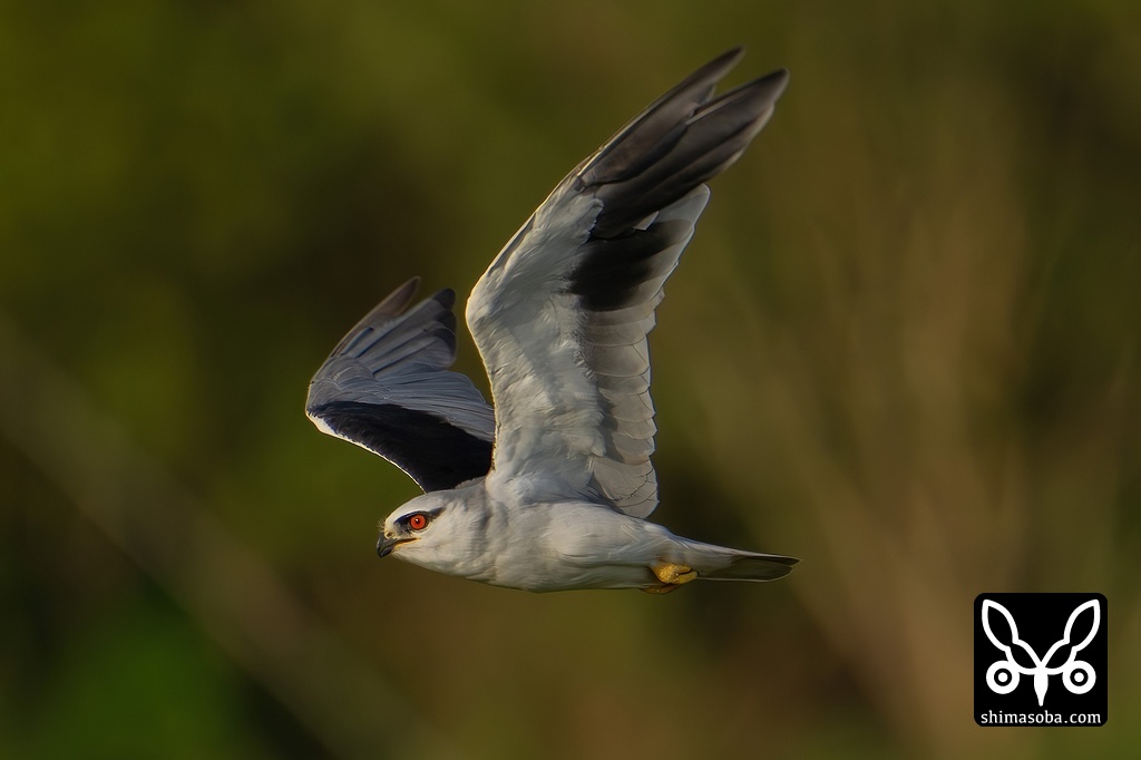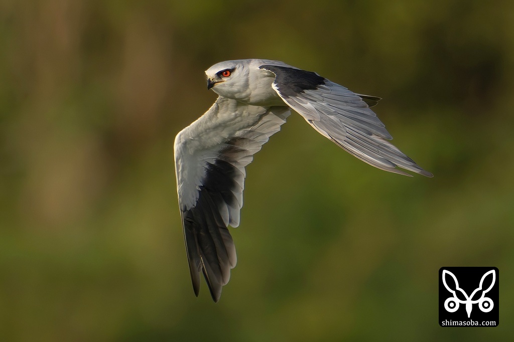 夕陽を浴びながら飛ぶカタグロトビの成鳥。