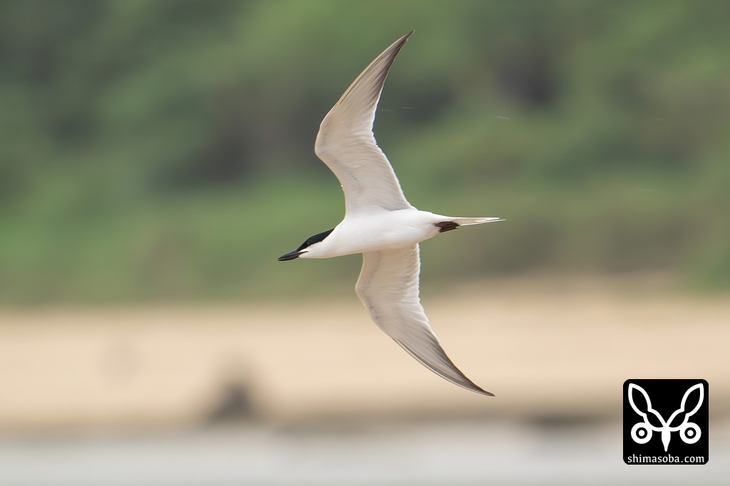 目の前で飛び交うハシブトアジサシ。3羽が夏羽で1羽は冬羽でした。
