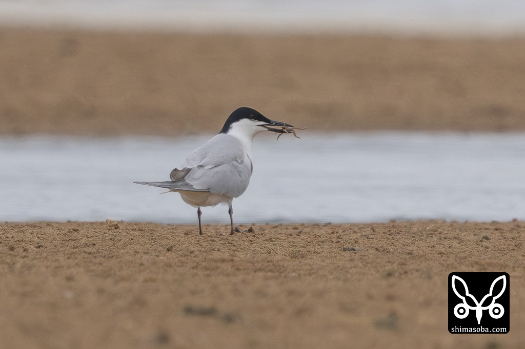 ヤマトオサガニを捕まえたハシブトアジサシ。