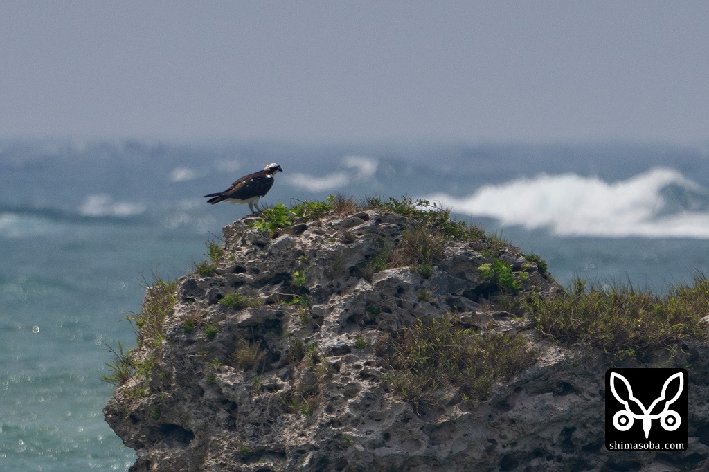 奥の岩礁には越夏中のミサゴ。