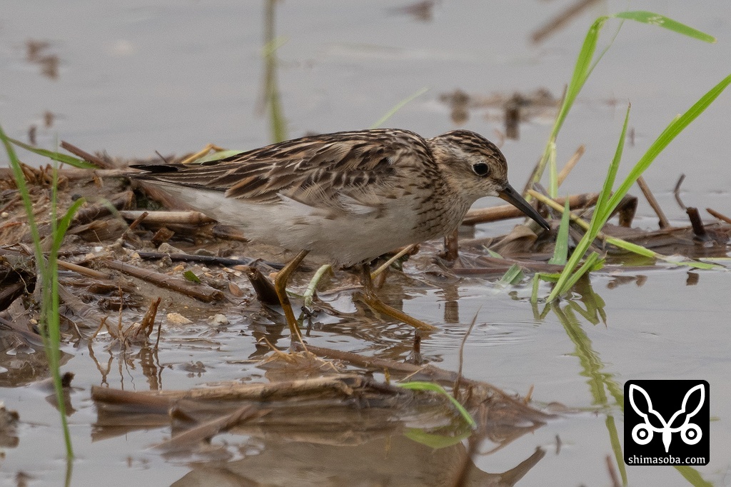 田んぼには、今季初となりアカアシシギの幼鳥が飛来しました。毎年、シギの仲間の幼鳥で一番乗りはアカアシシギです。
