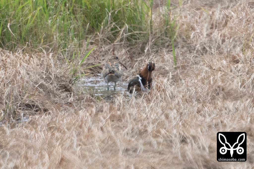 上のメスと連れ立っていたタマシギのオス。