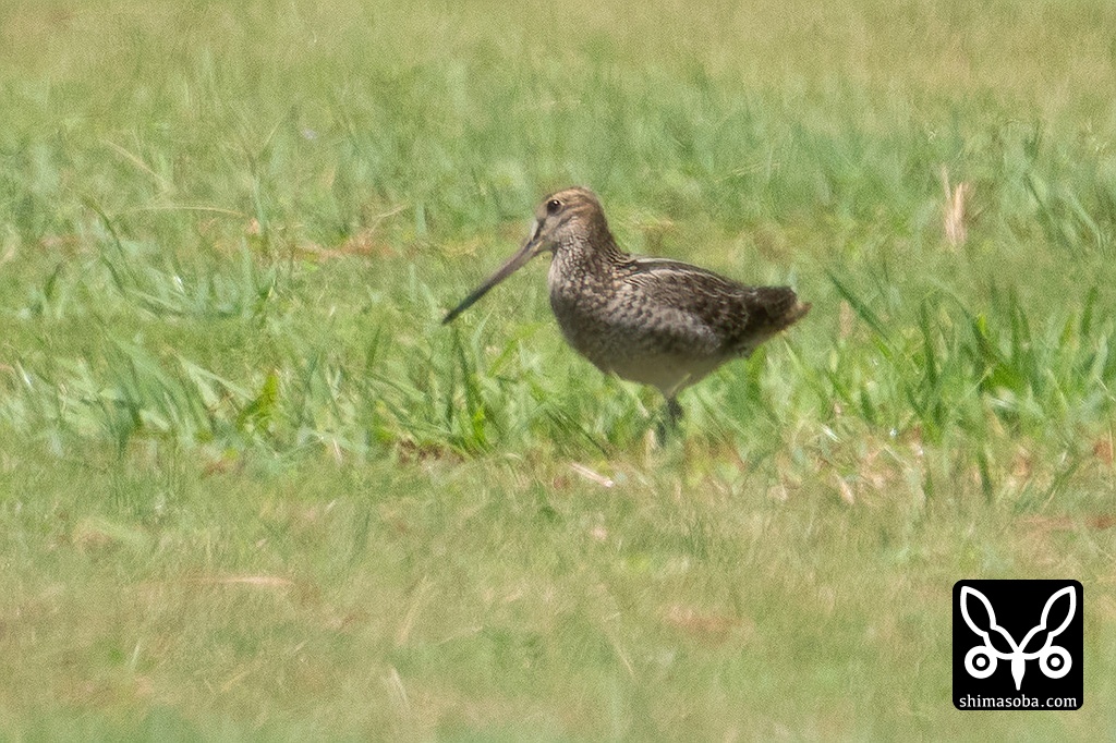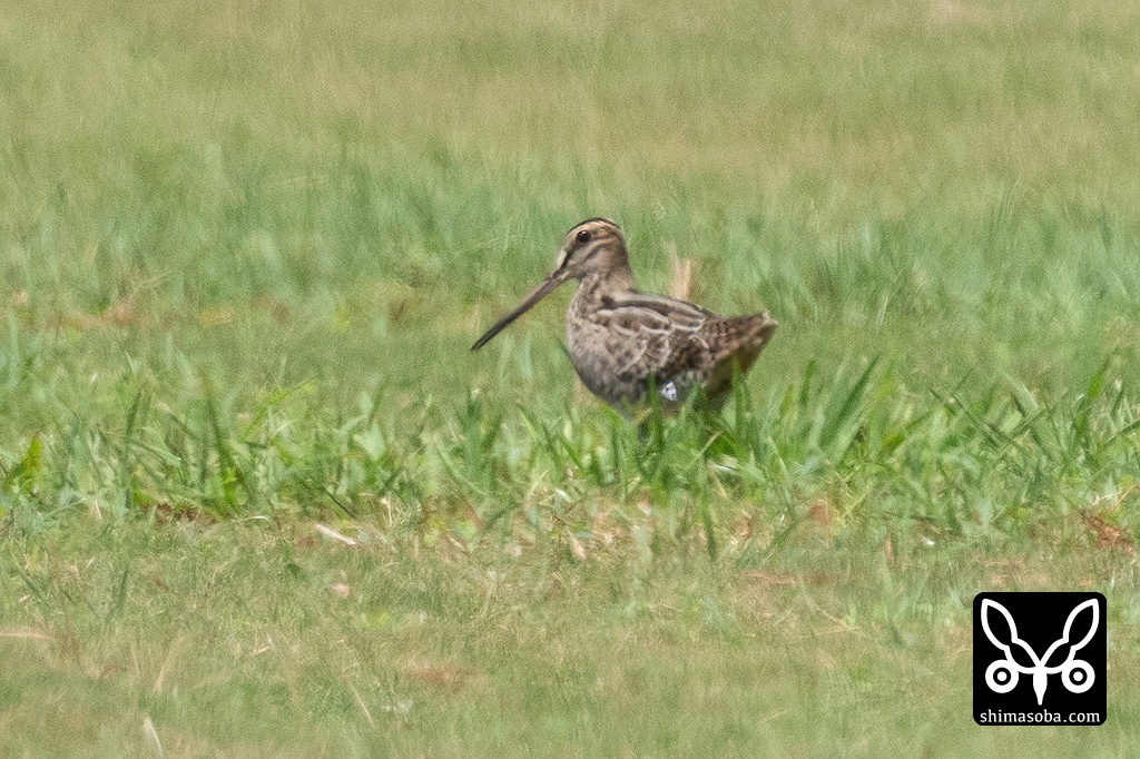雨上がりの久部良小学校のグラウンドにはハリオシギ1羽とチュウジシギ2羽がいました。与那国島の田んぼは全滅しているので、行くところがないものと思われます。ムナグロ十数羽も降りていました。