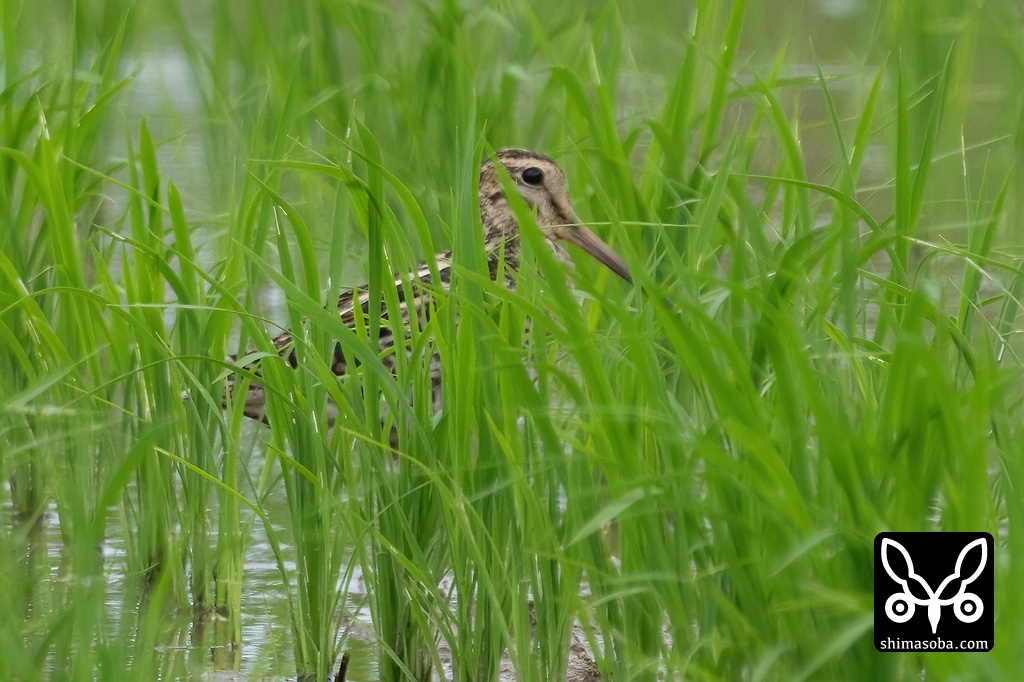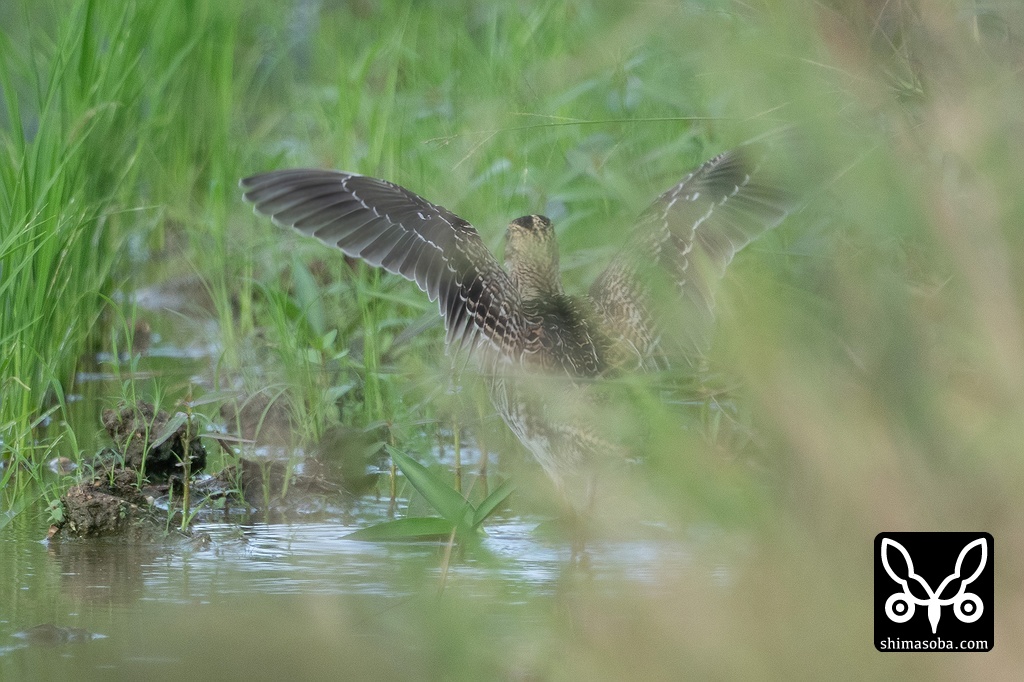 合宿一発目のハリオシギはこんな状況の出会い…。^^; 貴重な成鳥でした。
