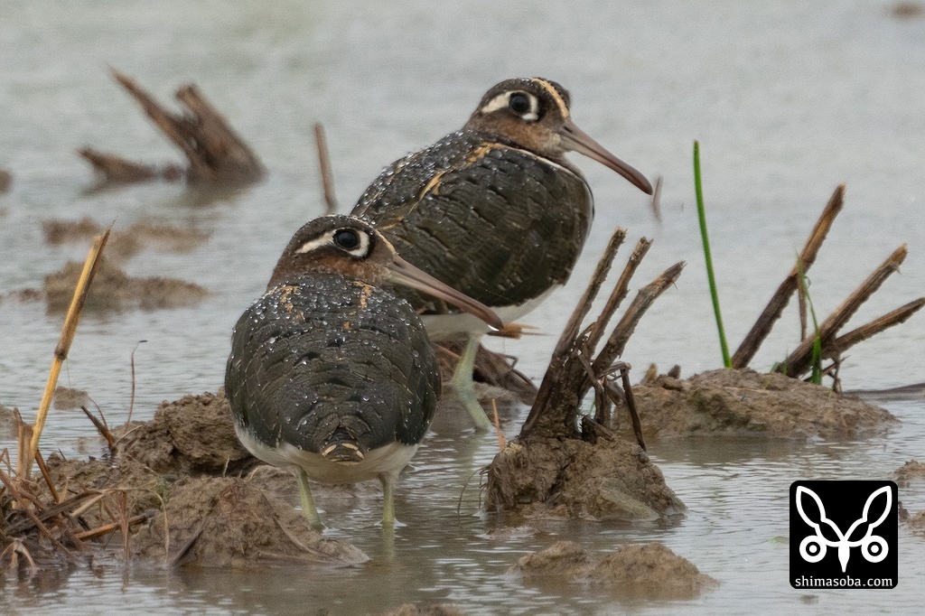 2羽ともタマシギのメス第1回冬羽。