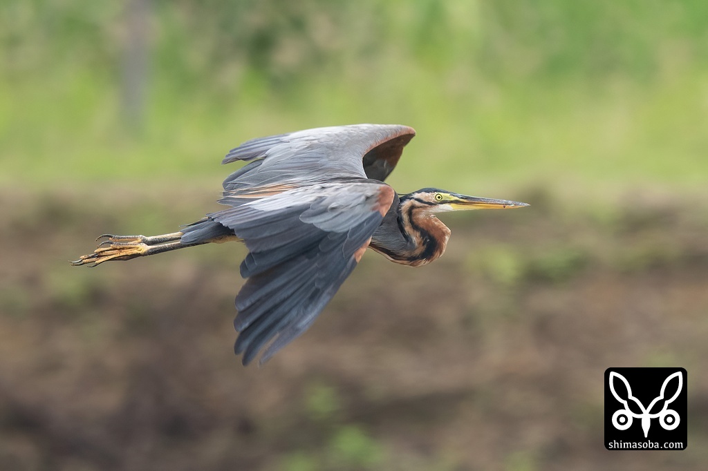 ツメナガセキレイを見てたらムラサキサギ成鳥が飛んできた。