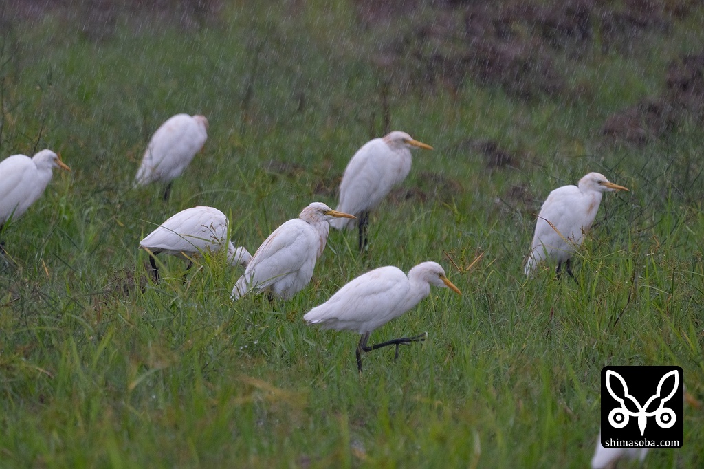 アマサギは200羽ほどの群れが田んぼに飛来していました。まだまだ増えます。