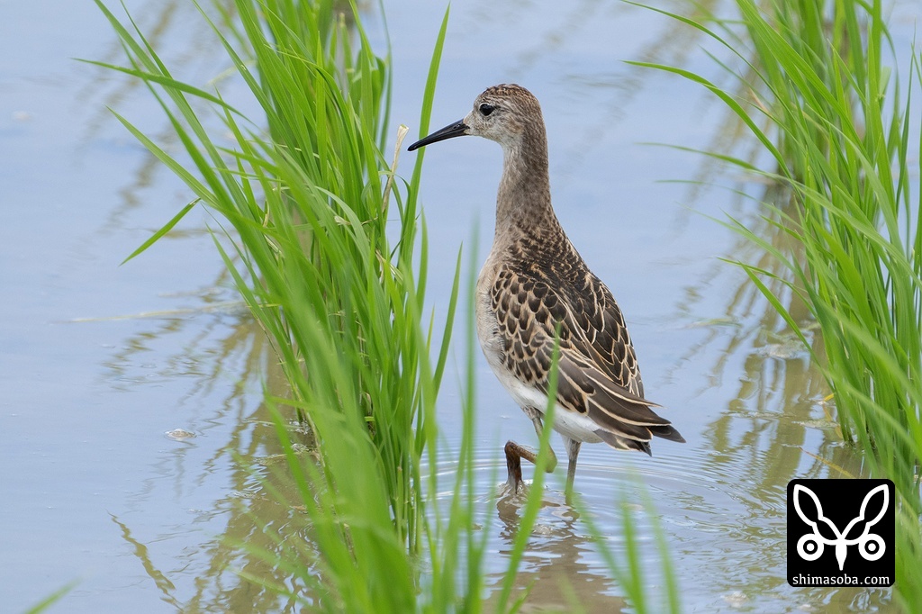 エリマキシギが複数箇所に飛来。ほとんど幼鳥です。定番のトウネンやアオアシシギ、コアオアシシギ、アカアシシギ、ヒバリシギはあちこちの田んぼに滞在中。ハマシギも見られるようになって来ました。
