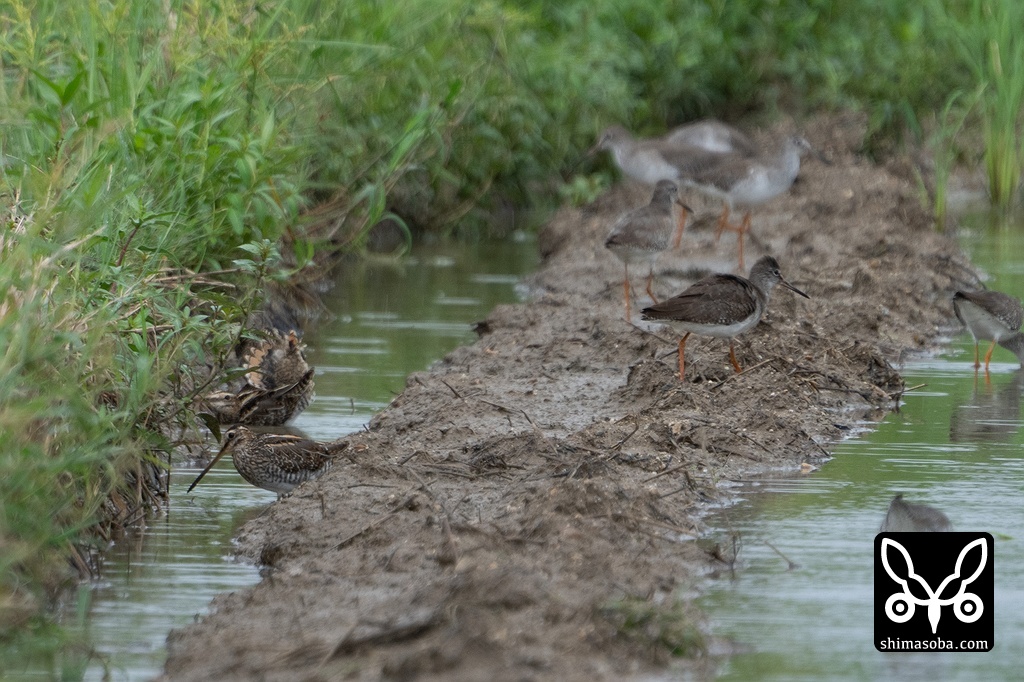 タシギとアカアシシギが溜まっていました。