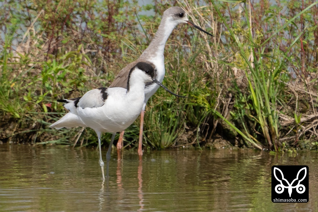 ソリハシセイタカシギとセイタカシギ。両方とも幼鳥。