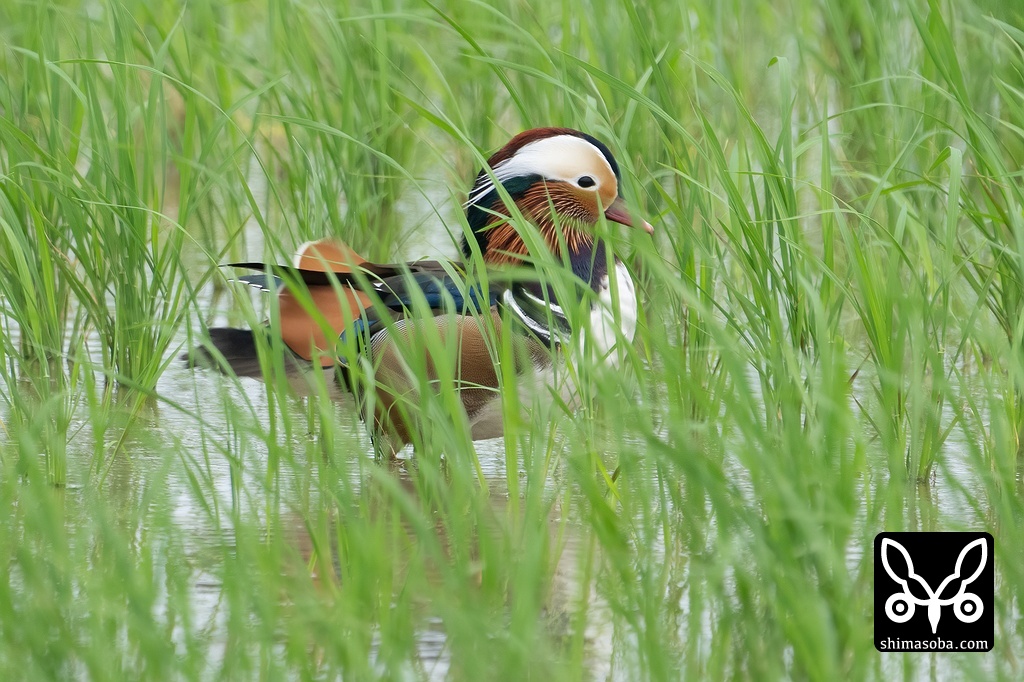 オシドリのオスも飛来していました。ほかにシマアジもいるそうですが見つけられず…。