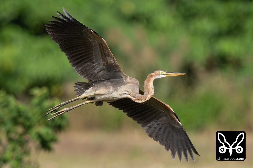 ベニバトのオス幼鳥。猛禽類に怯えて田んぼに降りて来ません。