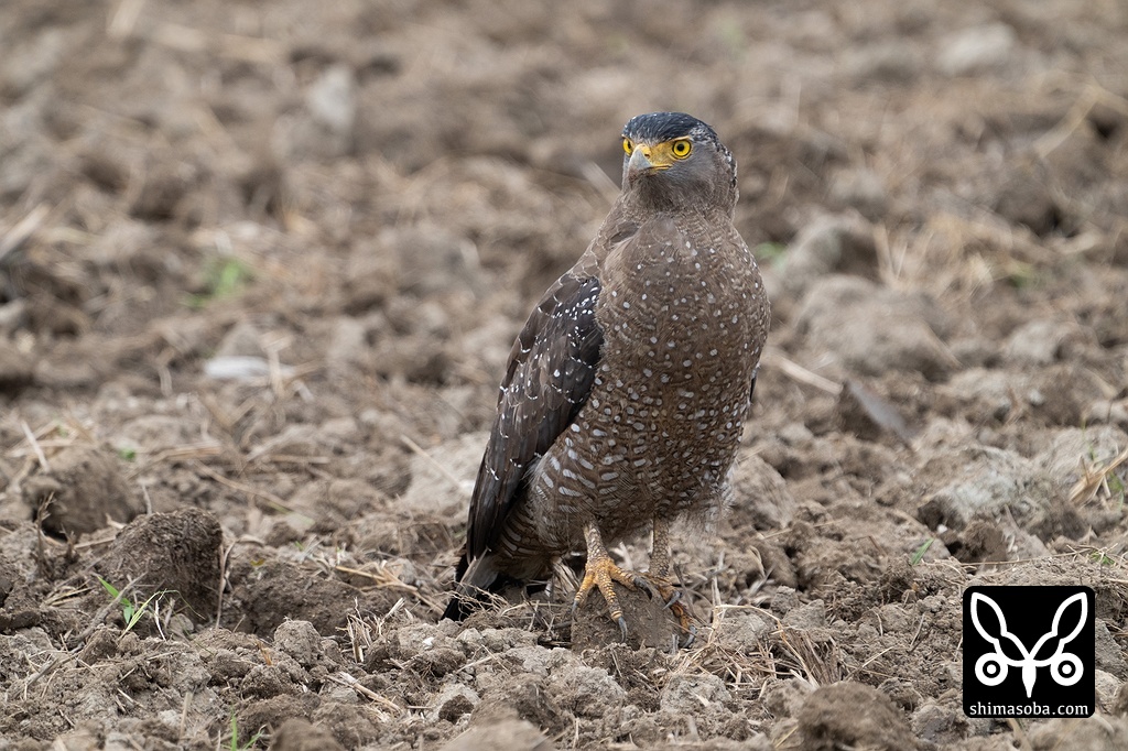今季は少ないカンムリワシ幼鳥。小さな田んぼに住み着いていますが、チョウゲンボウと争いが絶えません。
