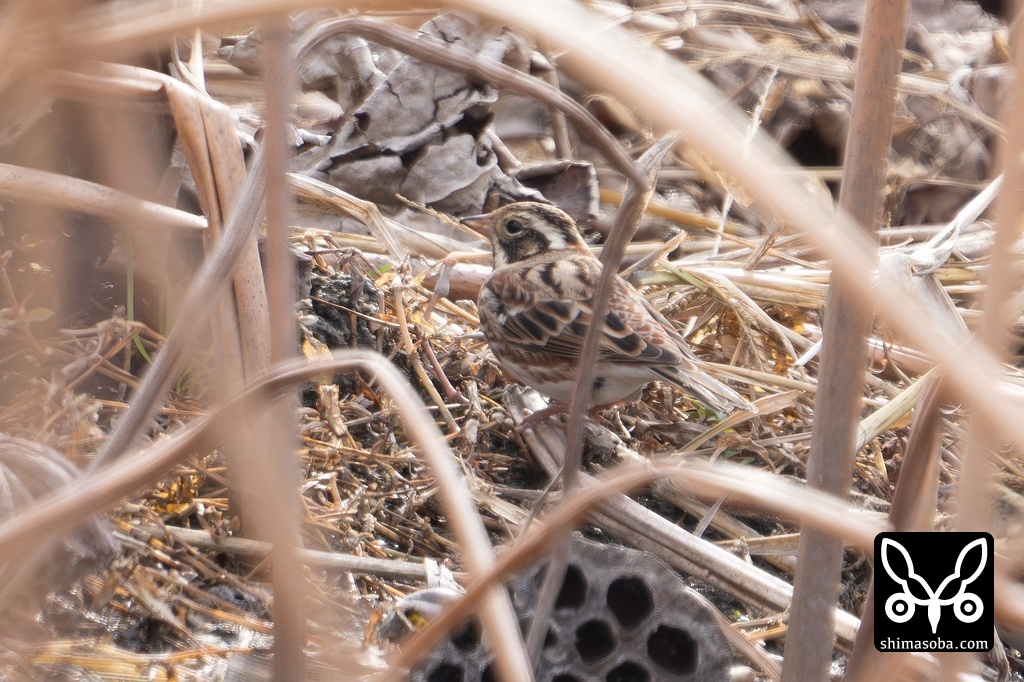 ホオジロのオス。10羽ほどの群れが見え隠れしていました。