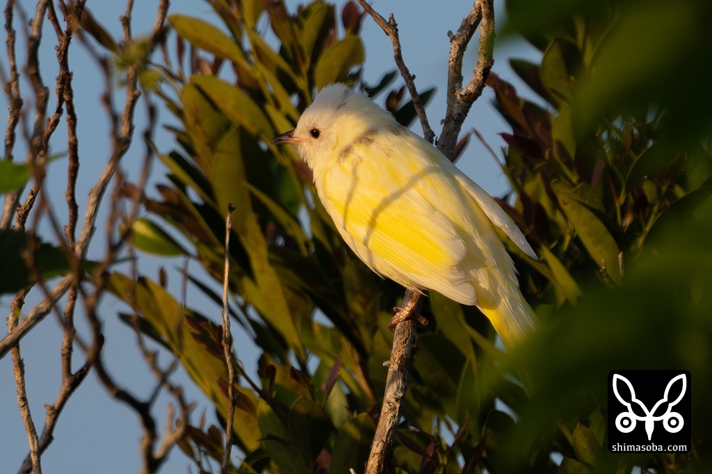 ずいぶん白い鳥が飛んだなぁと思ったら真っ白なシロガシラでした。アルビノかと思いましたが、写真に撮って見てみると少し色素が残っているようです。最初はシロガシラ? ウグイス? セキレイ? と迷いましたが「地ビール、地ビール」の鳴き声でシロガシラと相成りました。