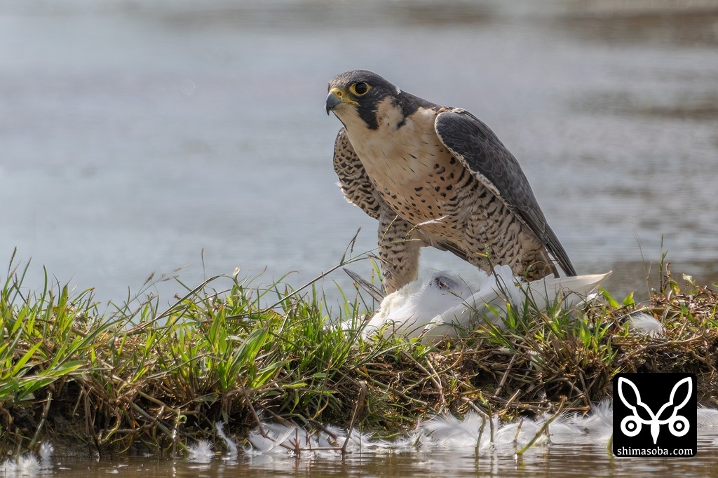 シベリアハヤブサがコサギを捕まえました。この個体は狩りがとてもうまいです。