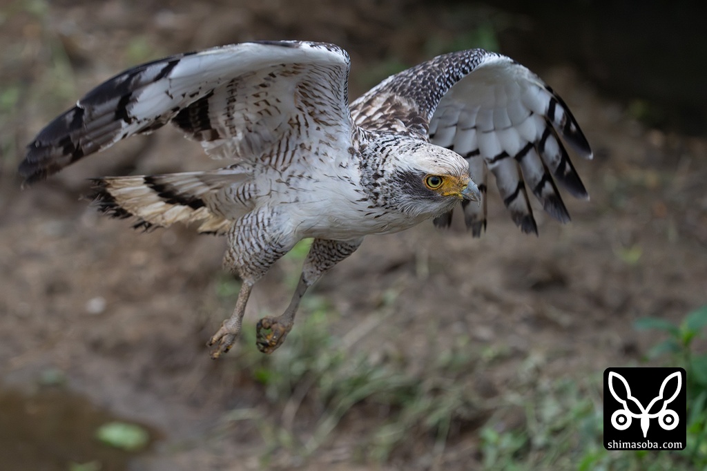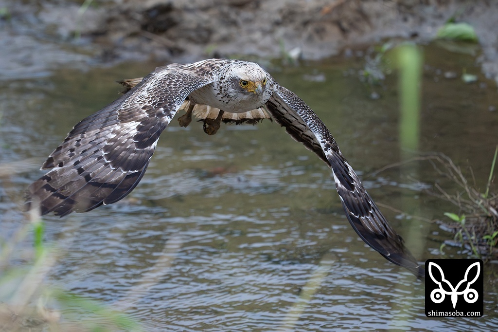 カンムリワシの幼鳥。水路をこちらへ向かって飛んできました。